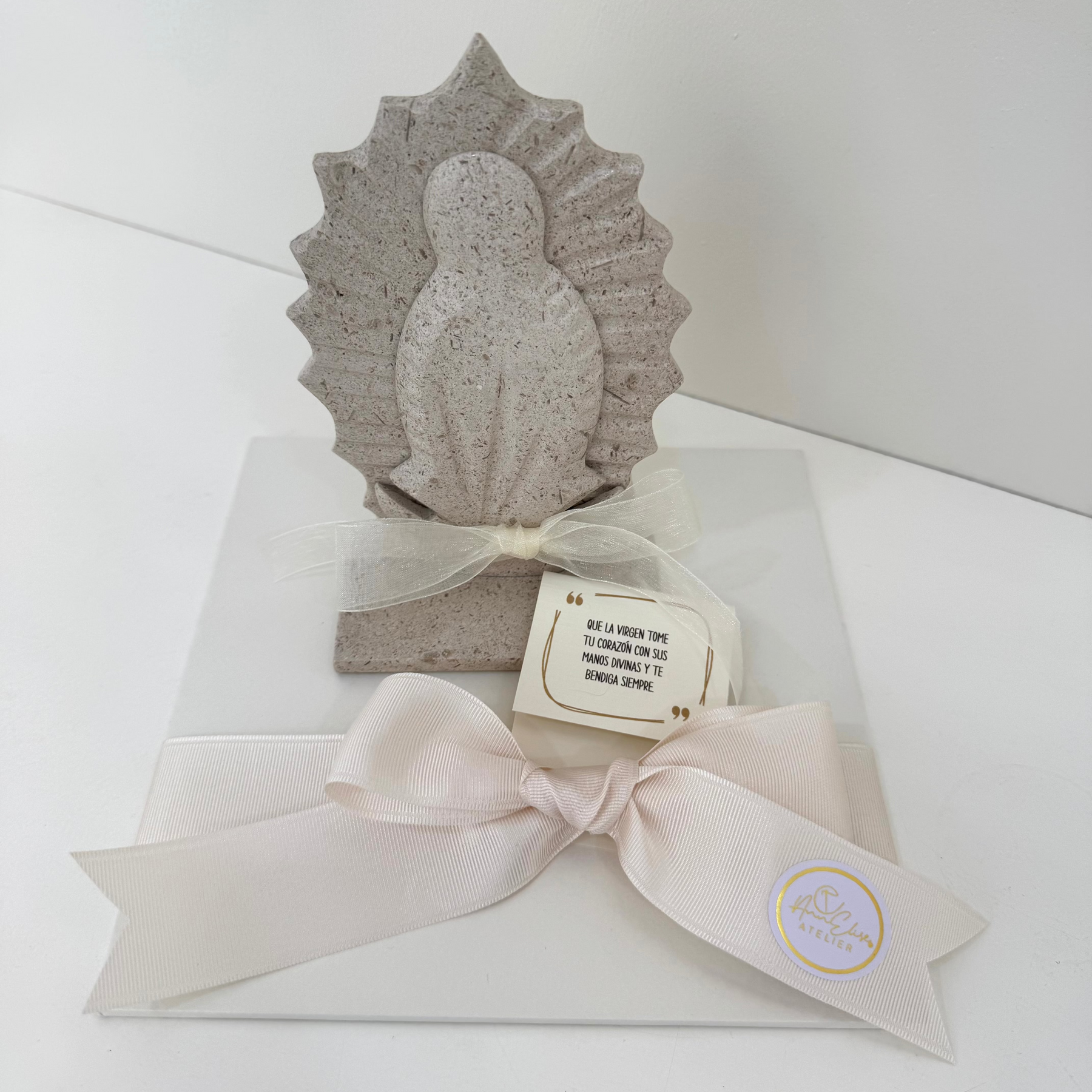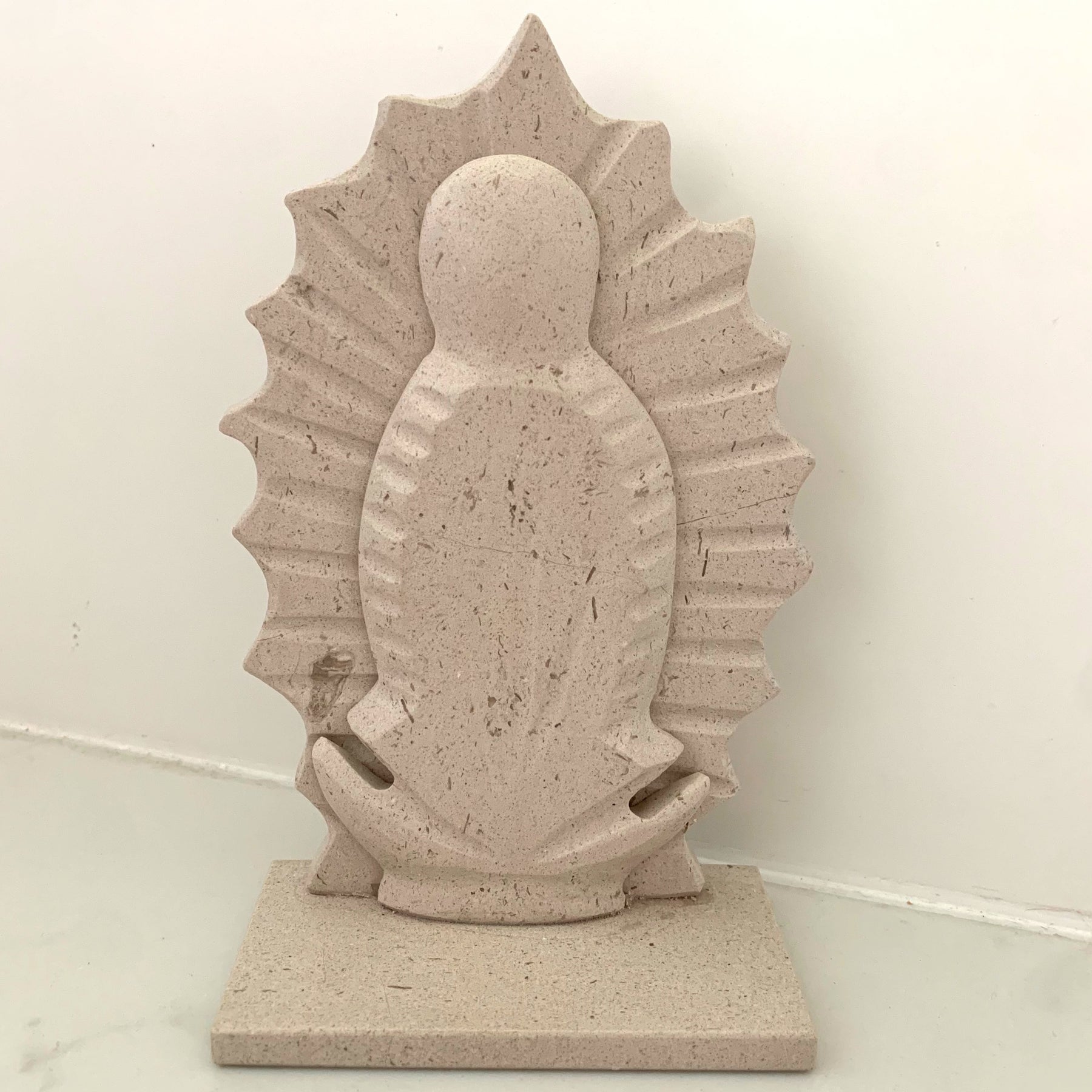 Virgen de Guadalupe de mármol. Piezas elaboradas a mano, de piedra natural. ( cada pieza es única, puede variar un poco el tamaño y color entra una pieza y otra)